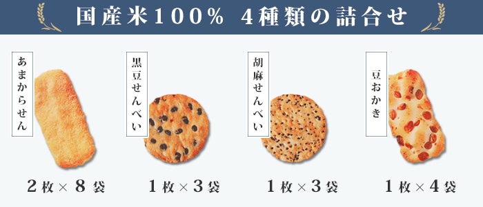 水稲もち米(国産)、大豆、植物油脂、でん粉、食塩/調味料(アミノ酸等)、植物レシチン、(一部に大豆を含む)